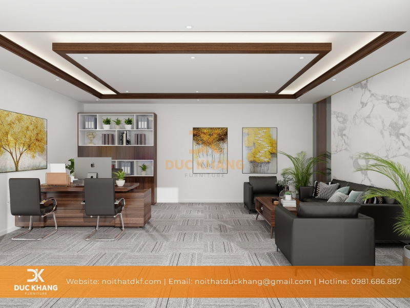 • Màu sắc: Phòng giám đốc là đầu não của doanh nghiệp, công ty nên không được chọn các gam màu quá chói, sặc sỡ. Hãy chọn các màu mà hợp với sở thích, mệnh của mình, điều đó không chỉ đem lại may mắn mà còn mang lại những ý nghĩa tích cực nhất cho công việc.