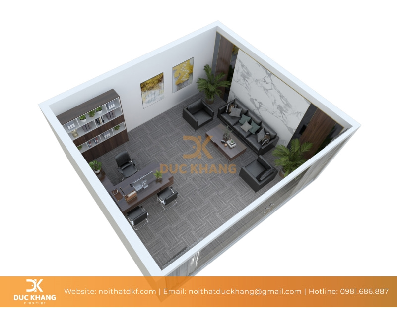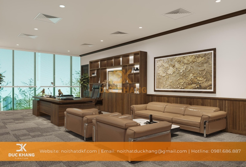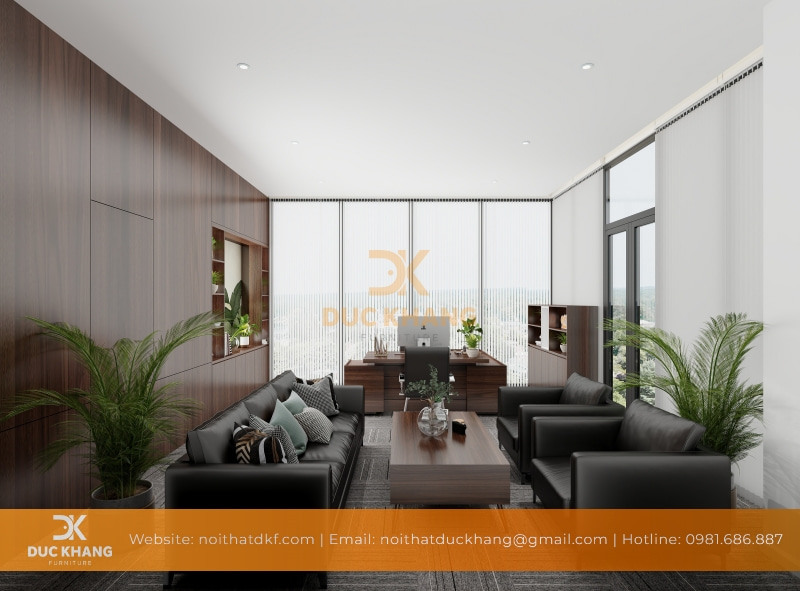 - Đến với Đức Khang, quý khách hàng sẽ được đội ngũ nhân viên chuyên nghiệp, giàu kinh nghiệm tư vấn để thiết kế và bố trí nội thất phòng giám đốc hợp phong thủy nhất.