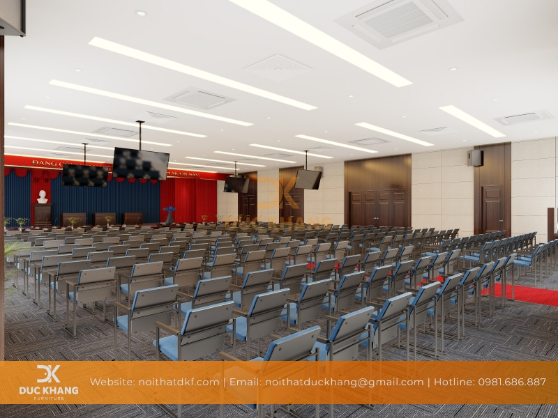 - Đội ngũ nhân viên tại Đức Khang vô cùng chuyên nghiệp, giàu kinh nghiệm từ thiết kế, setup đến thi công nội thất văn phòng nói chung và hội trường nói riêng. Đức Khang đảm bảo sẽ mang đến cho bạn hội trường được thiết kế phù hợp, công phu.
