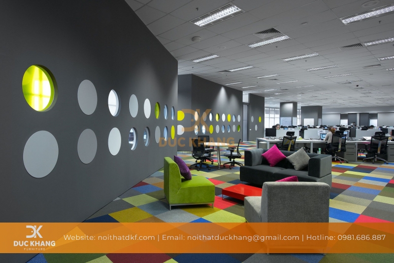 Nếu một doanh nghiệp đã có sẵn thương hiệu của mình thì đừng quên thiết kế văn phòng theo phong cách đa sắc màu. Đây là cách bài trí độc đáo có kết hợp nhiều gam màu khác nhau để tạo điểm nhấn cho đơn vị của mình. Tuy nhiên, nên kết hợp hài hoà để không gây rối mắt trong không gian.