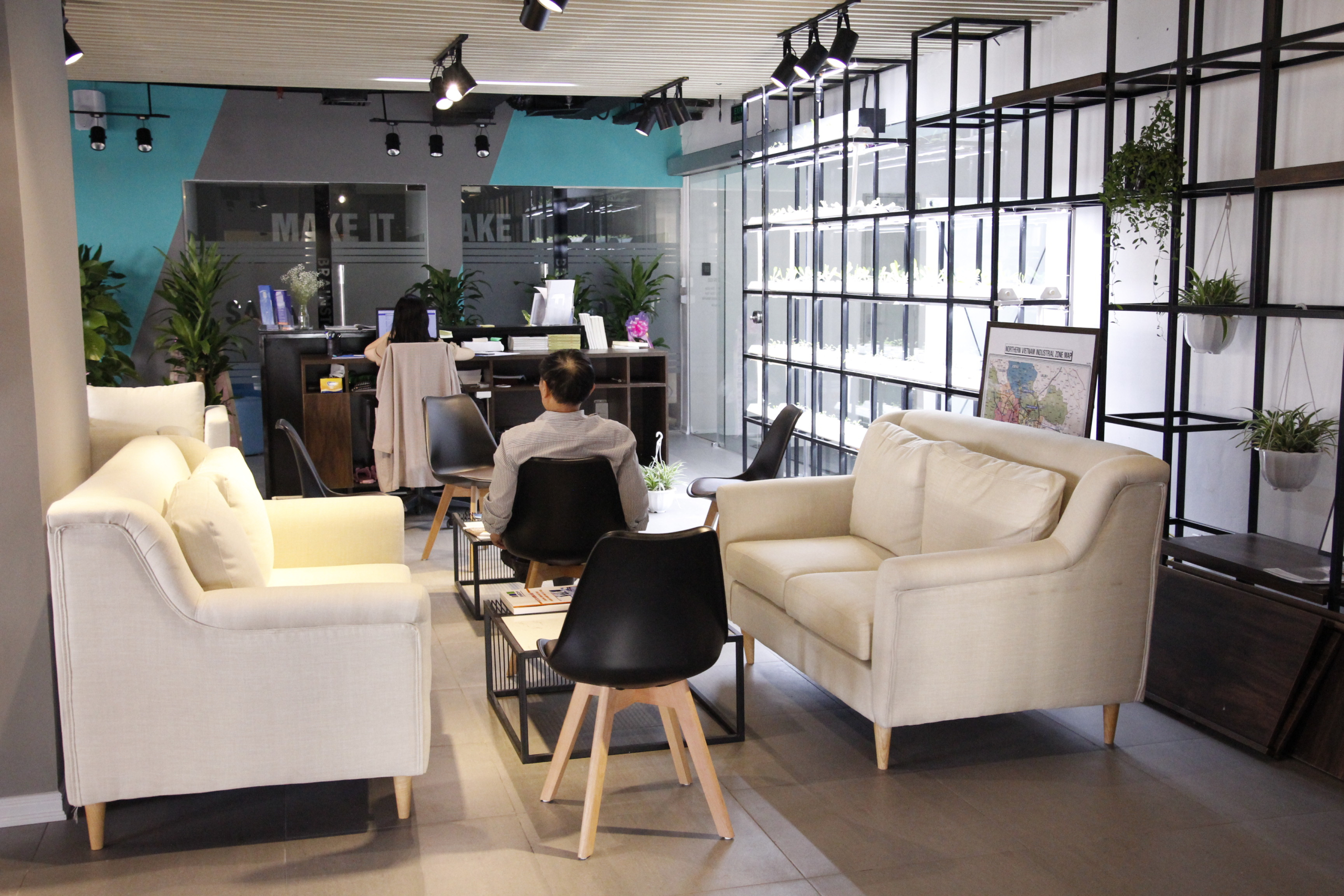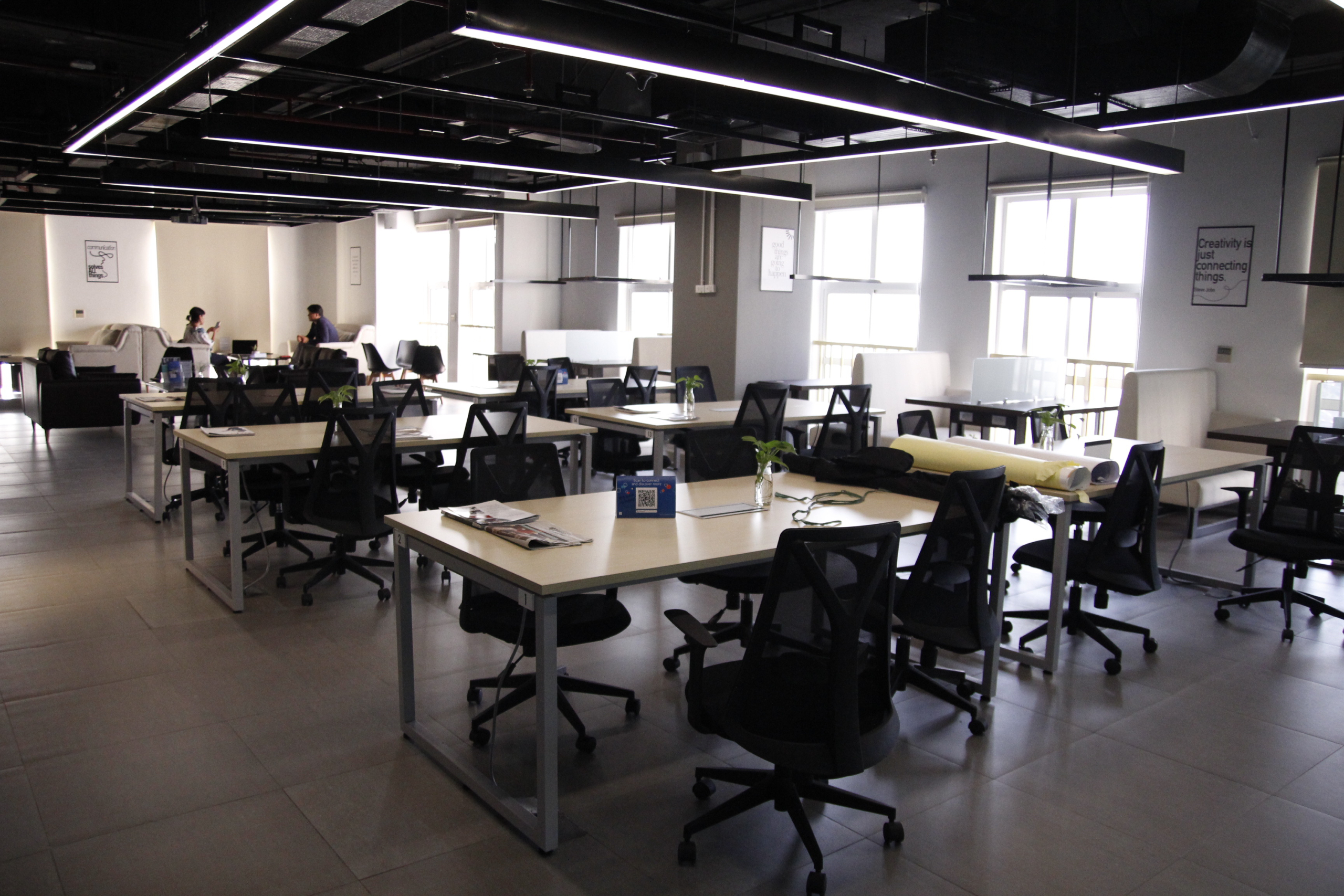 Do là mô hình văn phòng làm việc chung nên dự án này của Đức Khang cũng có nhiều điểm đặc biệt. Ngoài các hệ bàn làm việc chân sắt thông thường thì không gian chung có nhiều ghế sofa dài tại khu vực mở với nguồn ánh sáng tự nhiên.