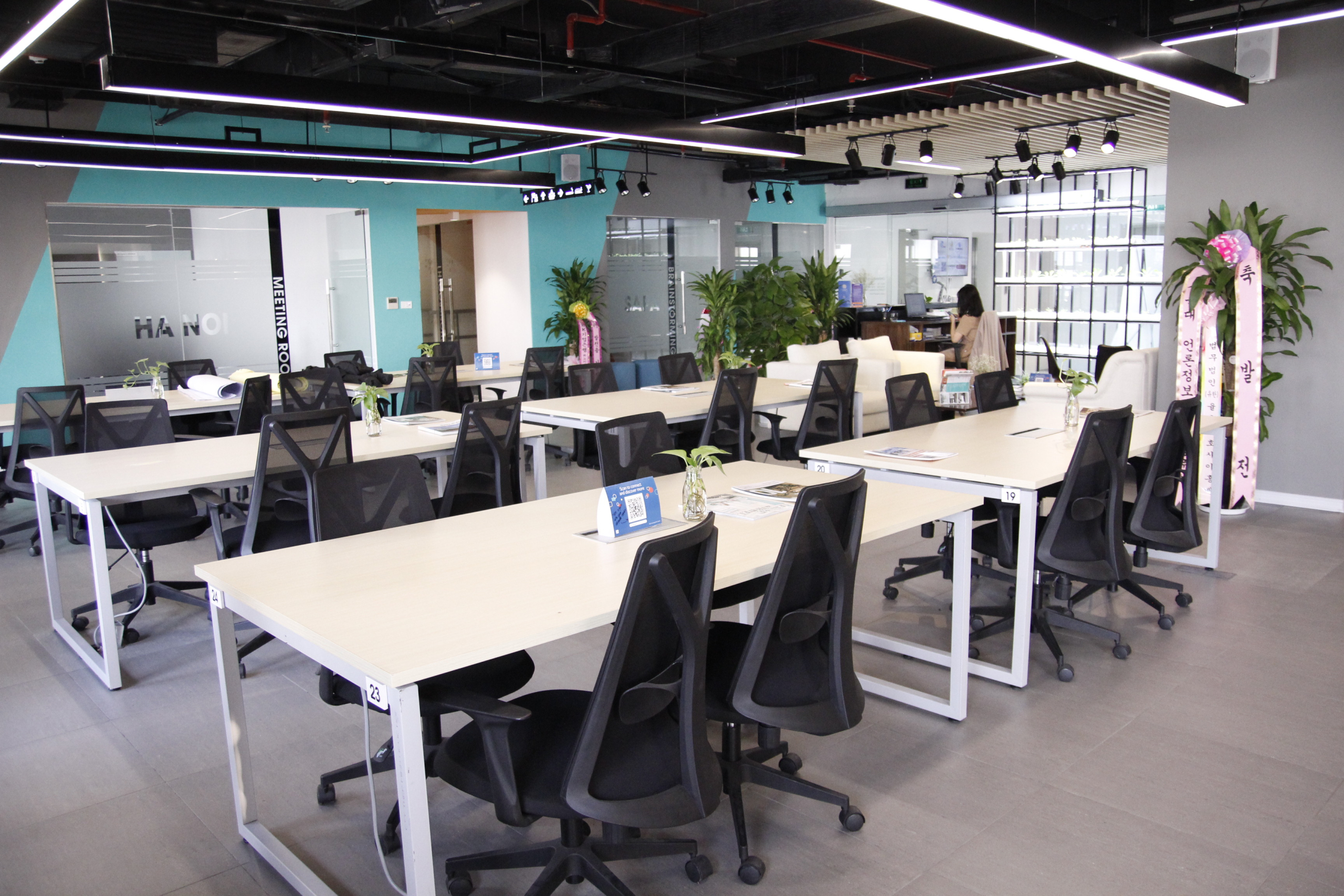Vẫn là các cụm bàn làm việc và ghế xoay phổ biến như tại các văn phòng làm việc khác. Các mẫu bàn ghế được thiết kế tối giản với các đường nét vuông vắn, đơn giản để có thể phù hợp với nhiều công việc đa dạng khác nhau.