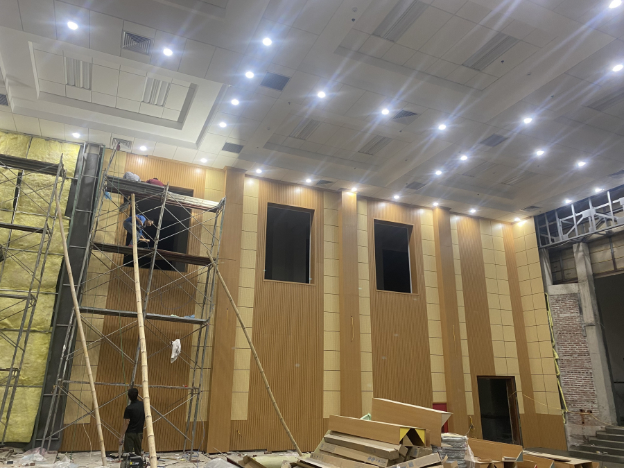 Thi công vách ốp tiêu âm hội trường tỉnh Điện Biên