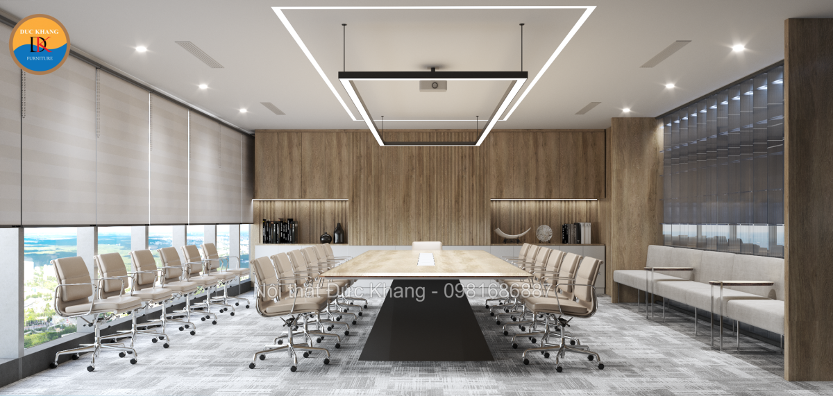 Đầu tư vào thiết kế nội thất cho phòng họp là điều được các doanh nghiệp quan tâm hiện nay nhằm muốn sở hữu không gian sang trọng, chuyên nghiệp để các buổi trao đổi, hợp tác cùng đối tác khách hàng đạt được hiệu quả tốt nhất. Nội thất Đức Khang mang đến dịch vụ thiết kế nội thất phòng họp, thi công trọn gói uy tín, chuyên nghiệp dành cho các công ty, đơn vị, tập đoàn. Chúng tôi là lựa chọn hoàn hảo giúp doanh nghiệp có được không gian phòng họp như mong muốn với mức chi phí tối ưu nhất!