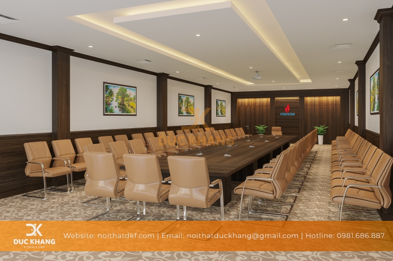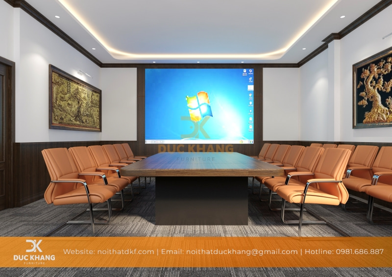 Phòng họp đẹp không chỉ thể hiện sự sang trọng ấn tượng mà còn khiến người nhìn ấn tượng ngay từ ánh nhìn đầu tiên. Bởi vậy, các dự án thiết kế phòng họp tại Đức Khang luôn được chú trọng thiết kế để phù hợp với từng doanh nghiệp.